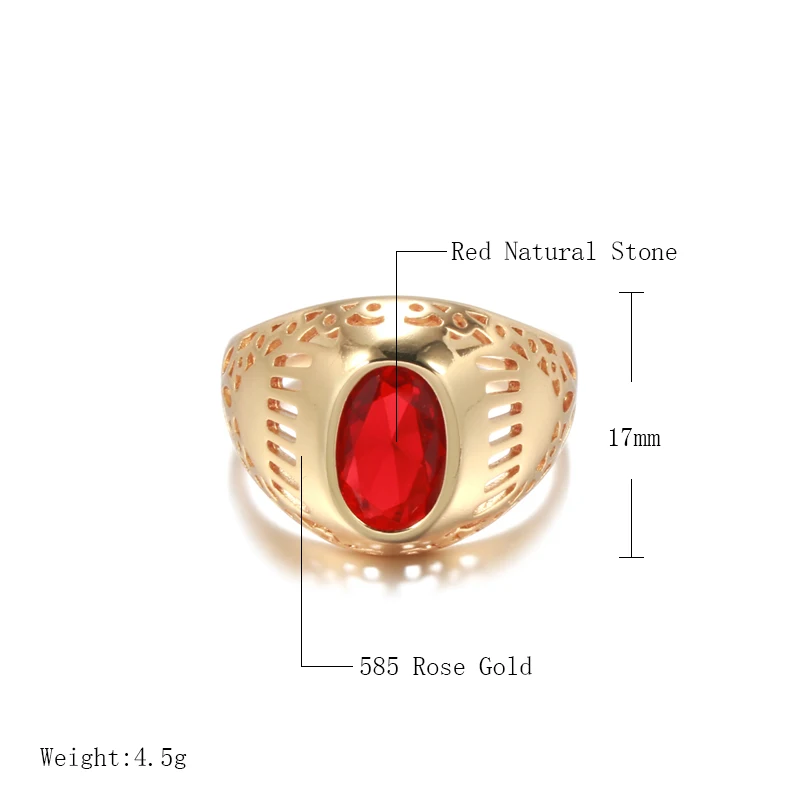 Kinel Luxury Red Natural Zircon Ring for Women Big Glossy 585 Rose Gold Ethnic Bride Ring Vintage Wedding Fine Jewelry