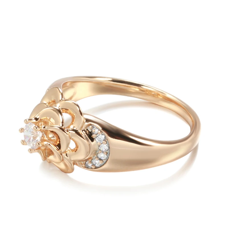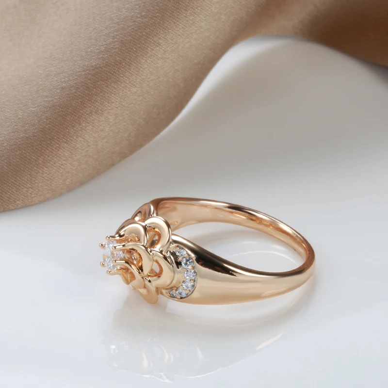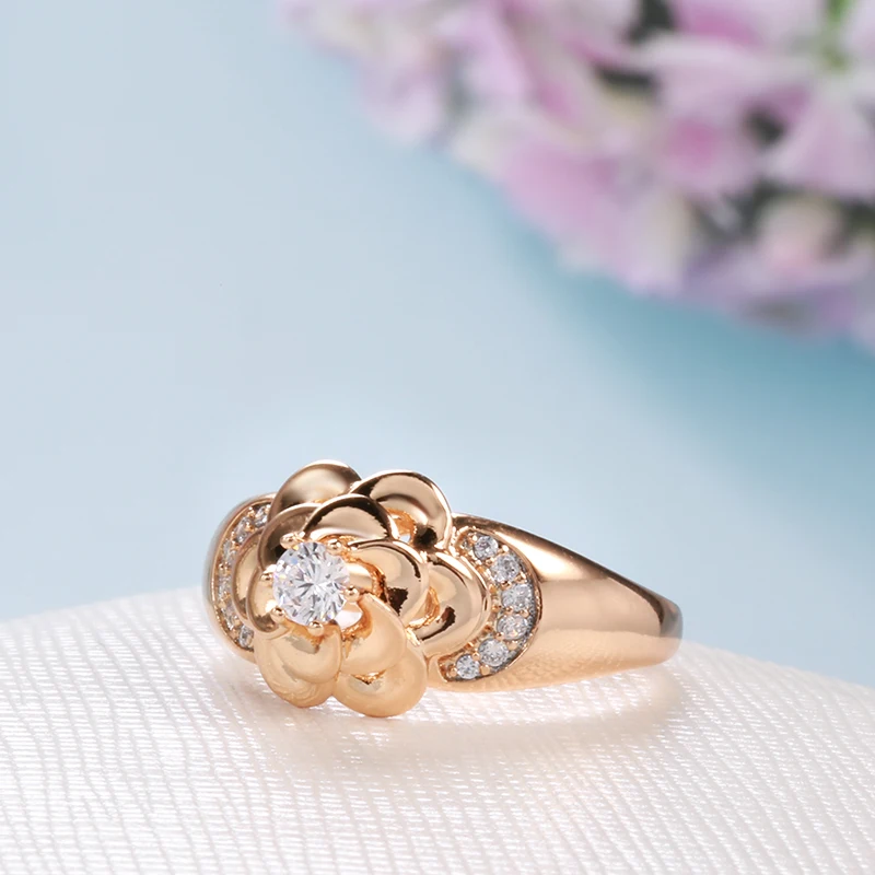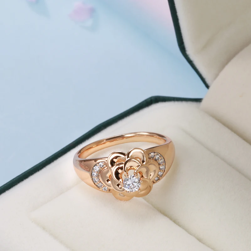 Kinel New 585 Rose Gold Flower Ring Fashion Creative Wedding Jewelry Natural Zircon Women Ring Unusual Vintage Jewelry