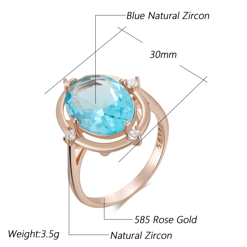 Kinel Hot Simple Romantic Blue Natural Zircon Bridal Wedding Rings Luxury 585 Rose Gold Color Daily Fine Jewelry Women for Gift