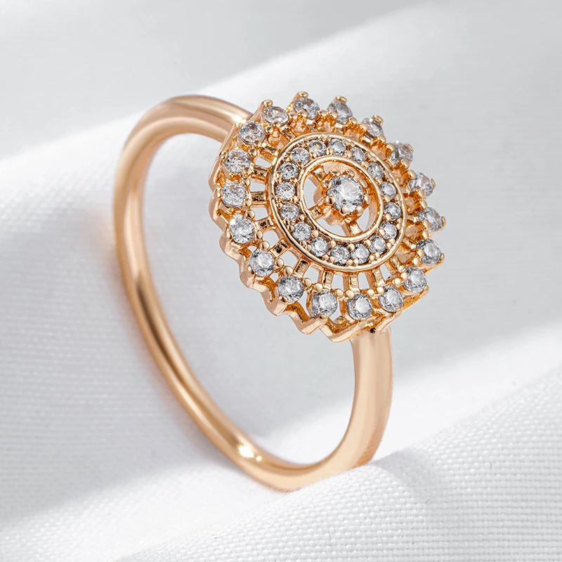 Kinel Hot 585 Rose Gold Color Crystal Flower Ring For Women Shiny Natural Zircon Ethnic Bride Accessories Daily Fine Jewelry