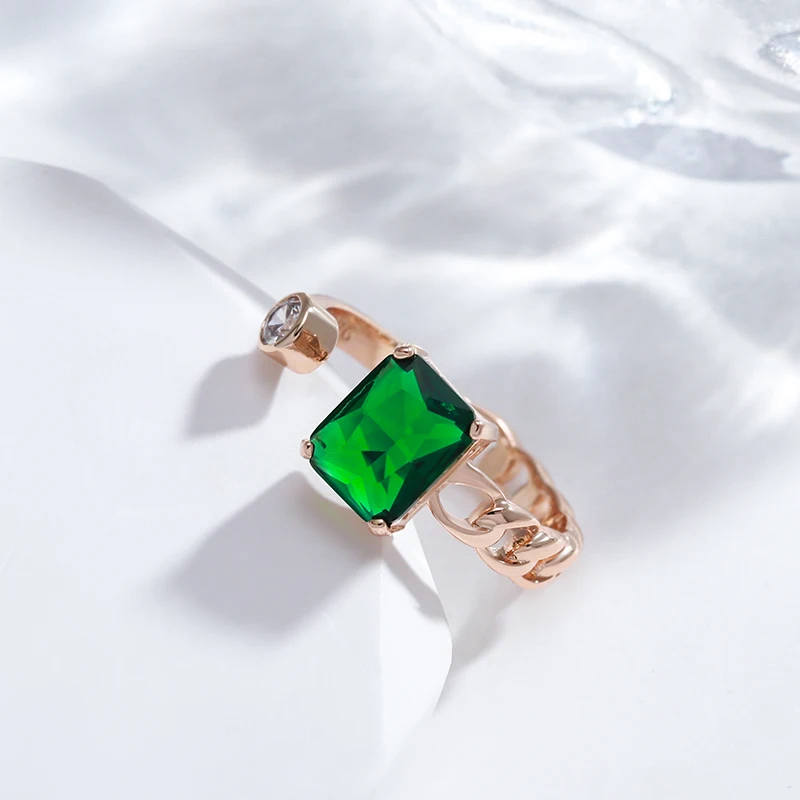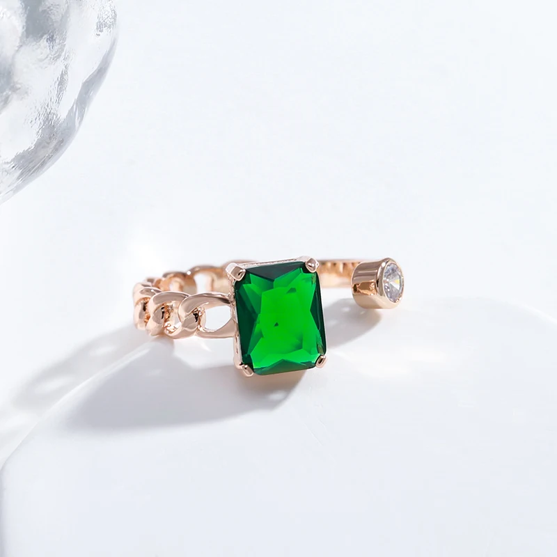Kinel Hot Luxury Square Green Natural Zircon Ring For Women 585 Rose Gold Color Fashion Daily Vintage Rings Fine Jewelry
