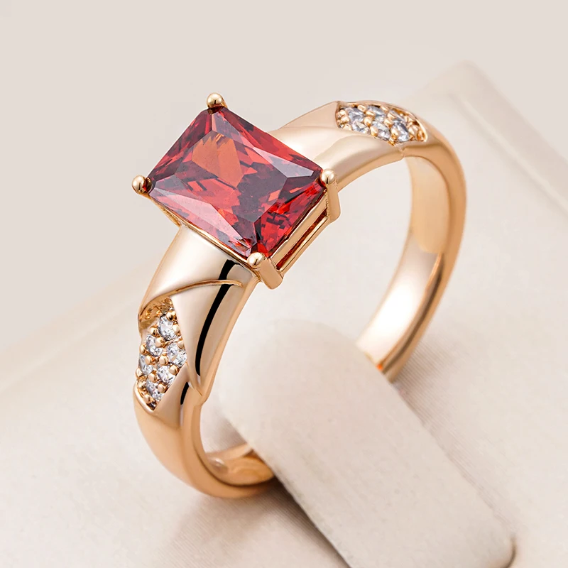Kinel Hot Shiny Square Red Natural Zircon Ring for Women Trend 585 Rose Gold Plating High Quality Daily Fine Vintage Jewelry