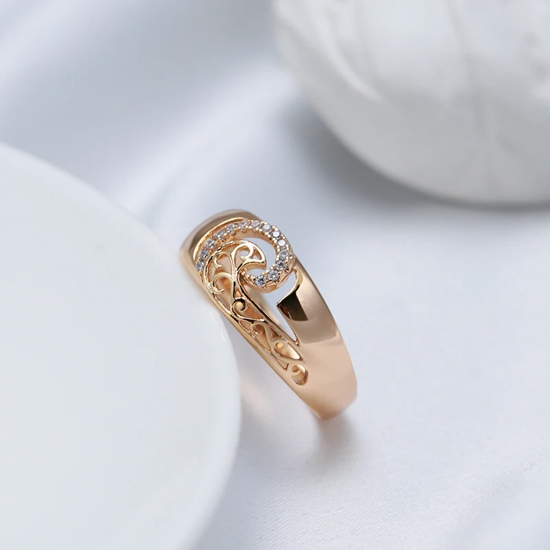 Kinel Hot Trendy Unique Women Rings 585 Rose Gold With Natural Zircon Hollow Pattern Ethnic Wedding Rings Fashion Jewelry Gift