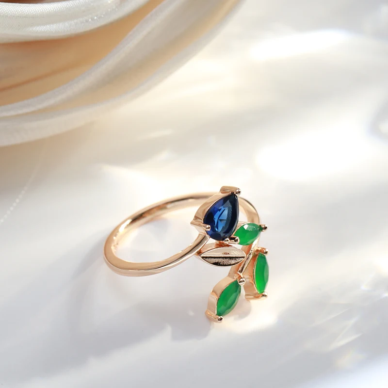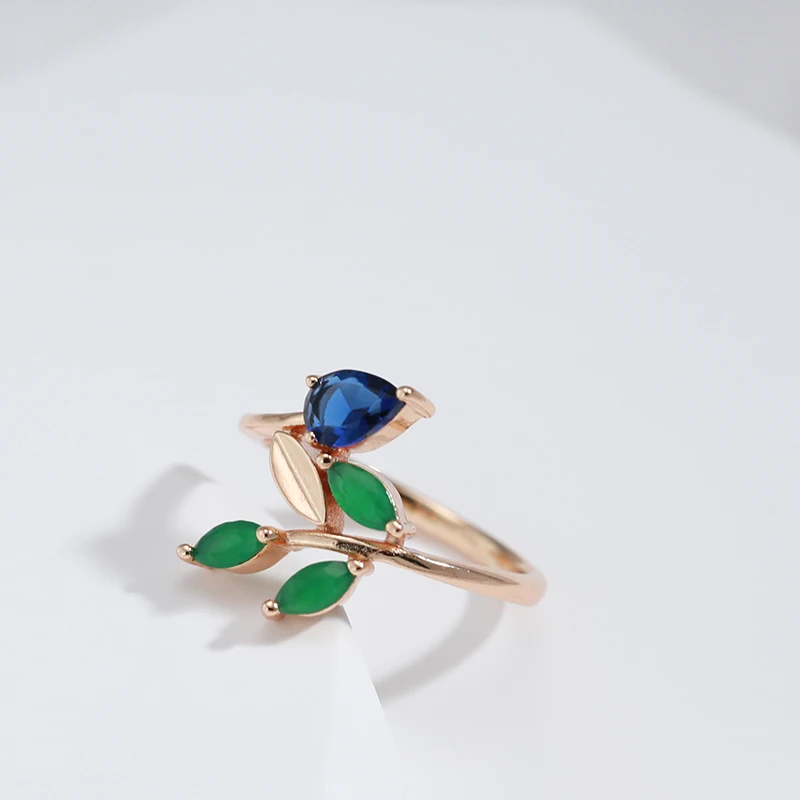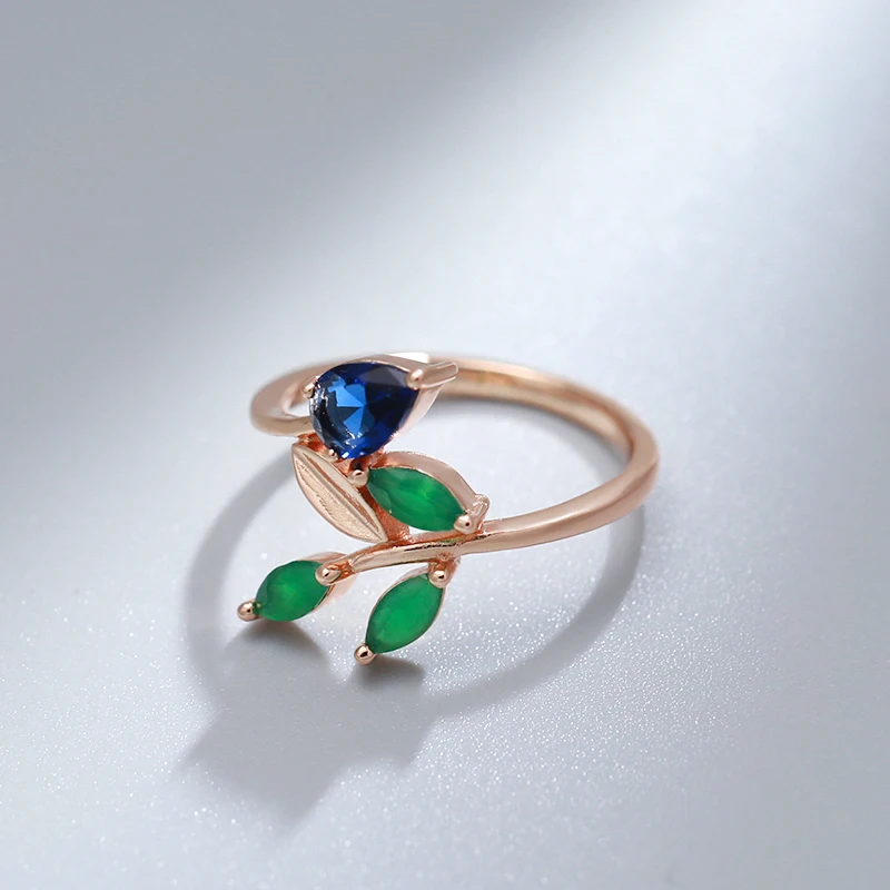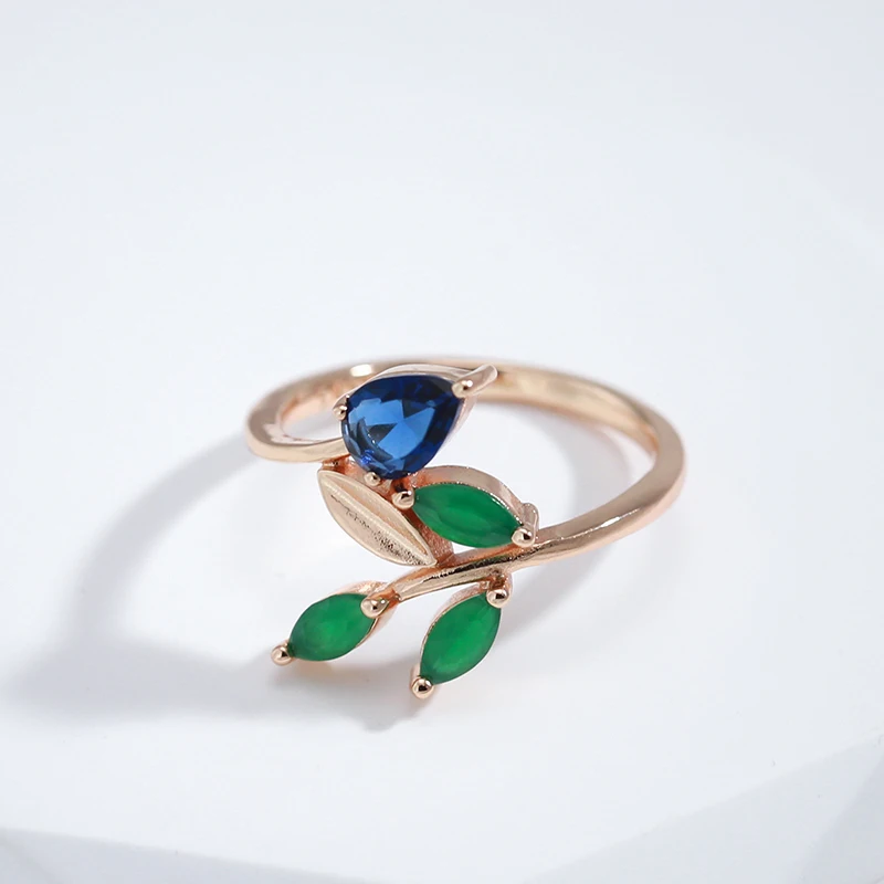 Kinel Hot Vintage Leaf Rings for Women Simple 585 Rose Gold With Natural Zircon Korean Ring High Quality Daily Fine Jewelry