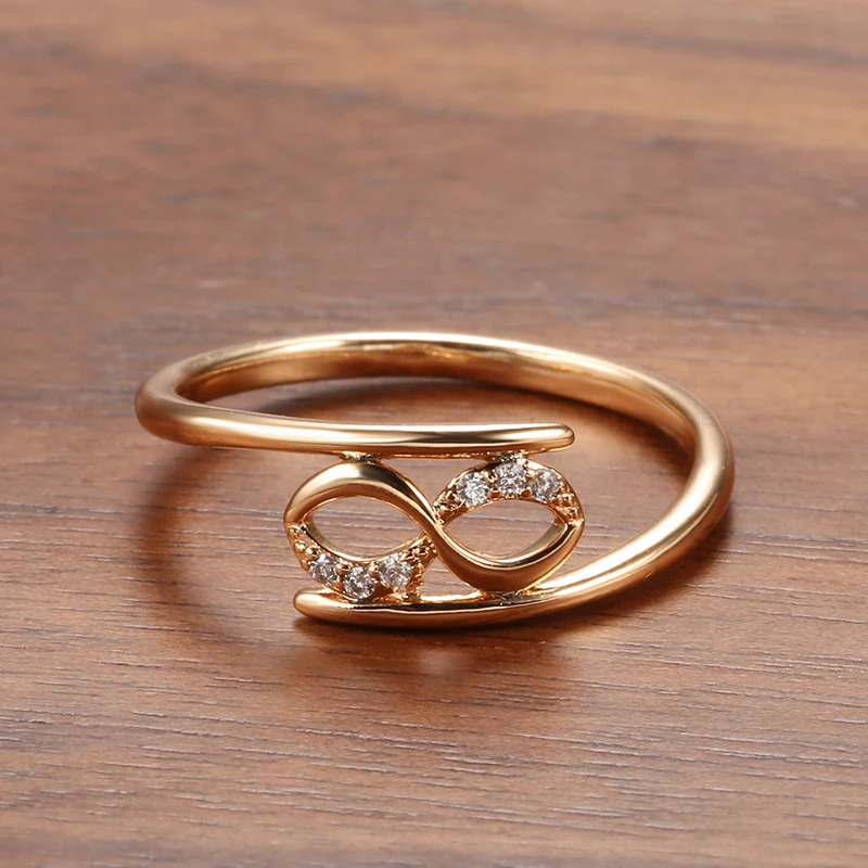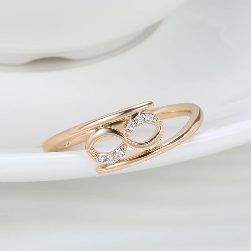 Kinel Hot Simple Bridal Wedding Ring 585 Rose Gold Micro-wax Inlay Natural Zircon Ring for Exquisite Vintage Jewelry 2021 New