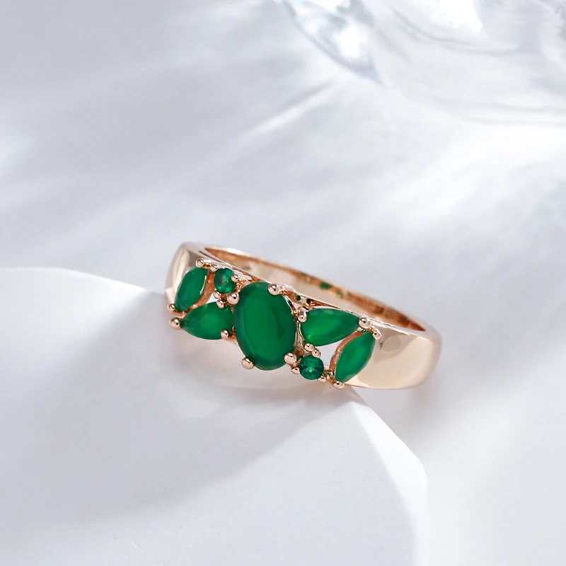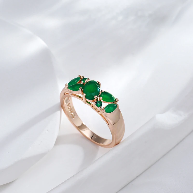 Kinel New Green Natural Zircon Geometry Ring for Women 585 Rose Gold Vintage Ethnic Bride Wedding Jewelry Party Accessories Hot