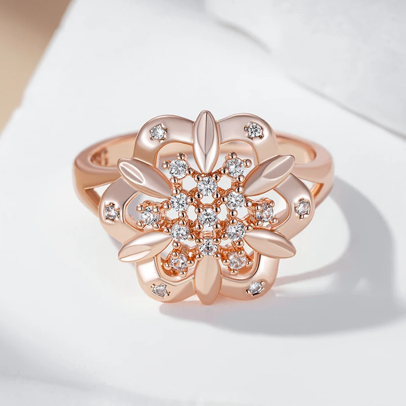 Kinel Unique Crystal Flower Ethnic Bride Rings for Women 585 Rose Gold Color With Natural Zircon Accessories Daily Jewelry