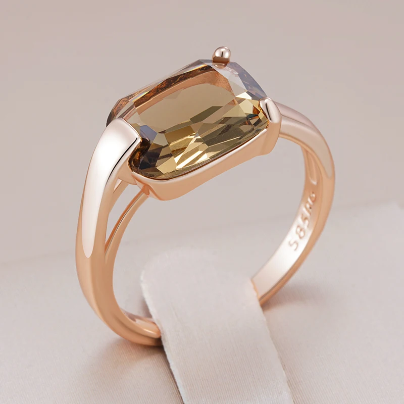 This piece is crafted from Copper & 585 Rose Gold and features round-cut natural zircon sapphire for a stunning finish.