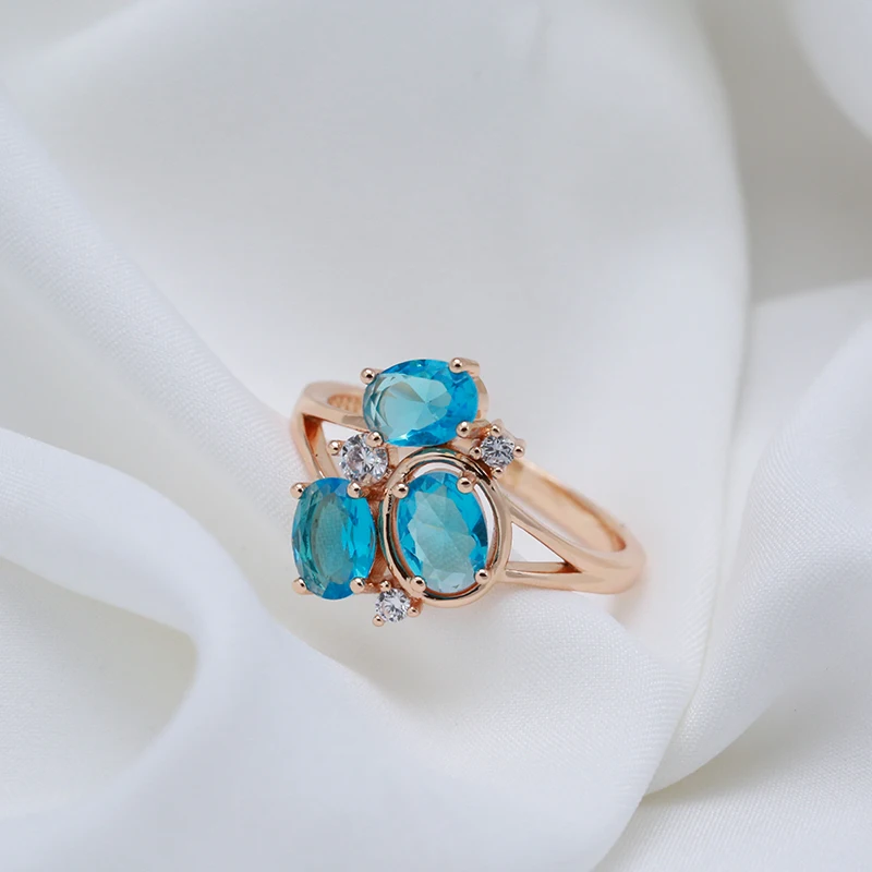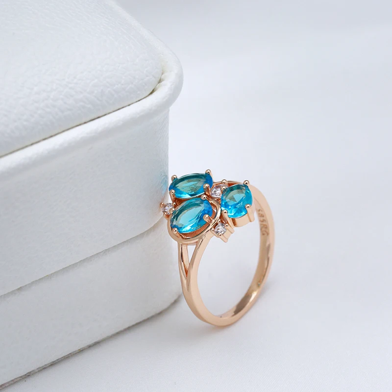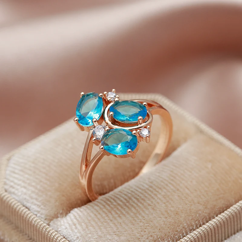 Kinel Fine Blue Natural Zircon Ring Hollow Geometry Flower 585 Rose Gold Ethnic Bride Rings for Women Vintage Wedding Jewelry