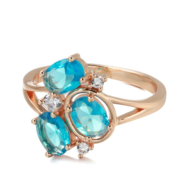 This piece is crafted from Copper & 585 Rose Gold and features round-cut natural zircon sapphire for a stunning finish.