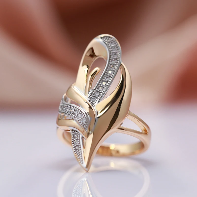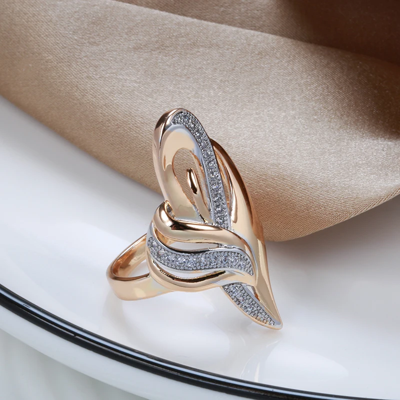 Kinel Luxury 585 Rose Gold Big Rings for Women Micro-wax Inlay Natural Zircon Fine Rings Unusual Ethnic Bride Wedding Jewelry