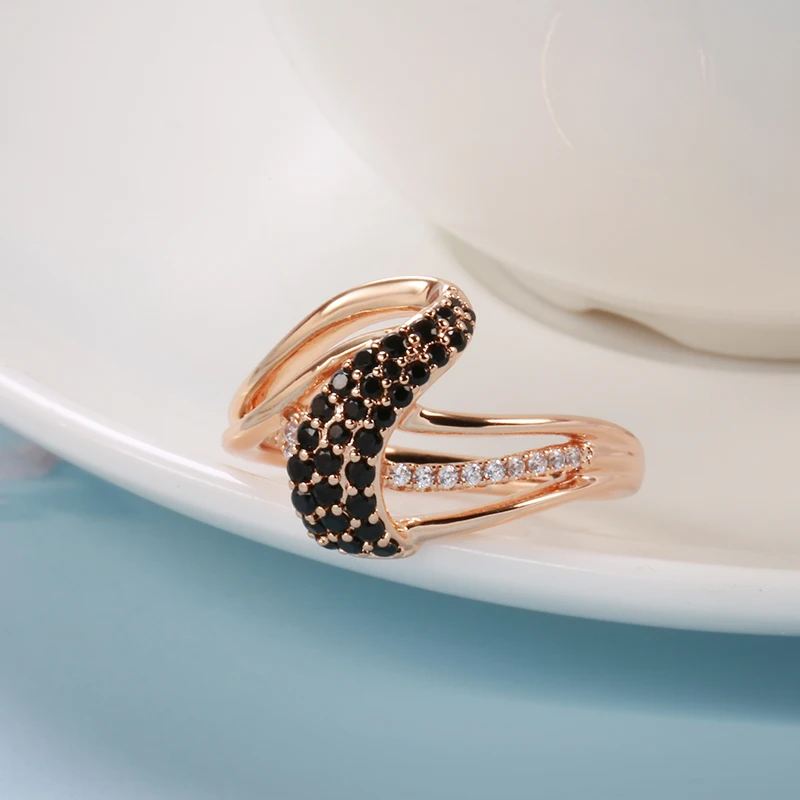 Kinel Luxury 585 Rose Gold Ring for Women Fashion Geometry Natural Black Zircon Waves Rings for Women Vintage Wedding Jewelry