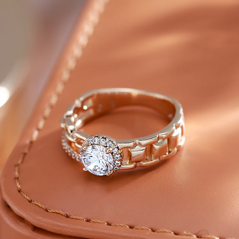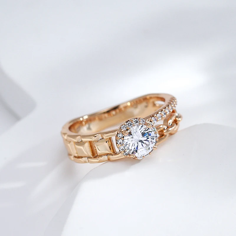 Kinel New 585 Rose Gold Color Bride Wedding Ring Fashion Natural Zircon Crystal Rings for Women Modern Party Daily Jewelry