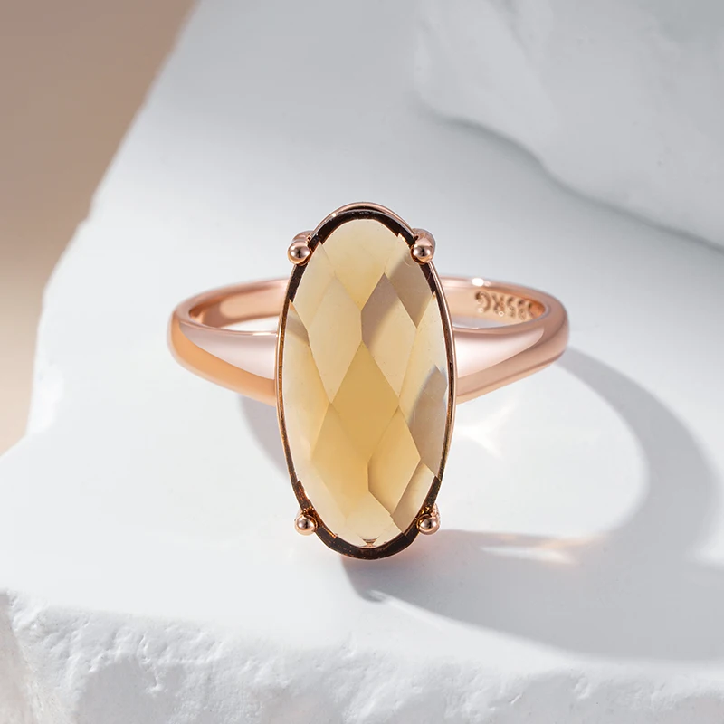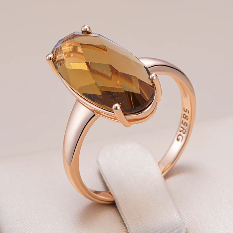 Kinel Fashion Big Oval Light Brown Natural Zircon Bride Ring Simple 585 Rose Gold Color High Quality Daily Jewelry for Women