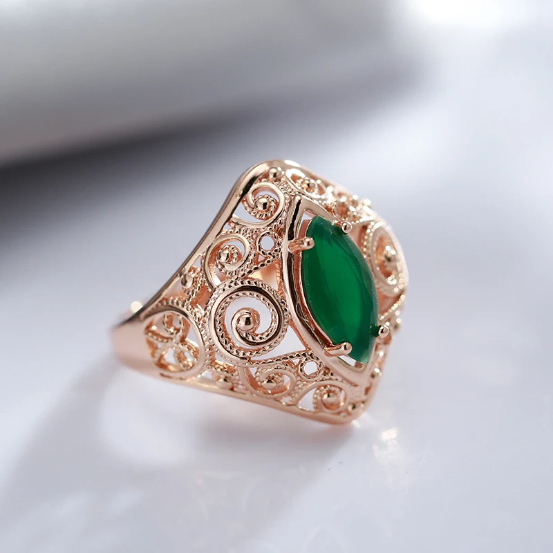 Trend Big Vintage Natural Glossy Metal Ethnic Bride Ring 085