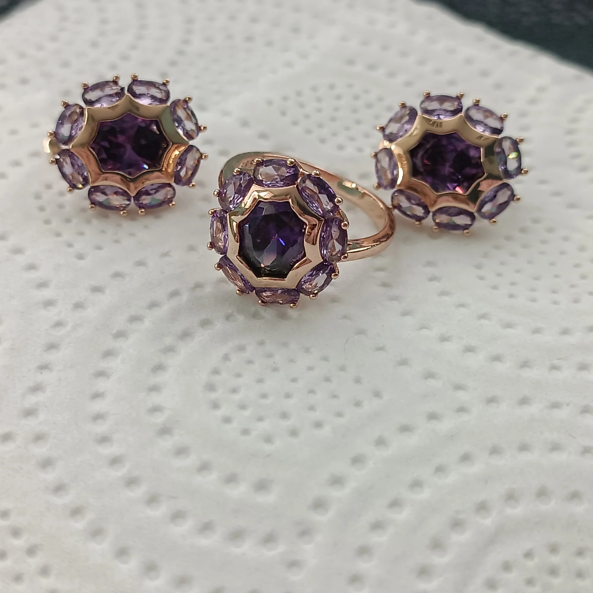 Unusual Sparkling Oval Purple Natural Rings