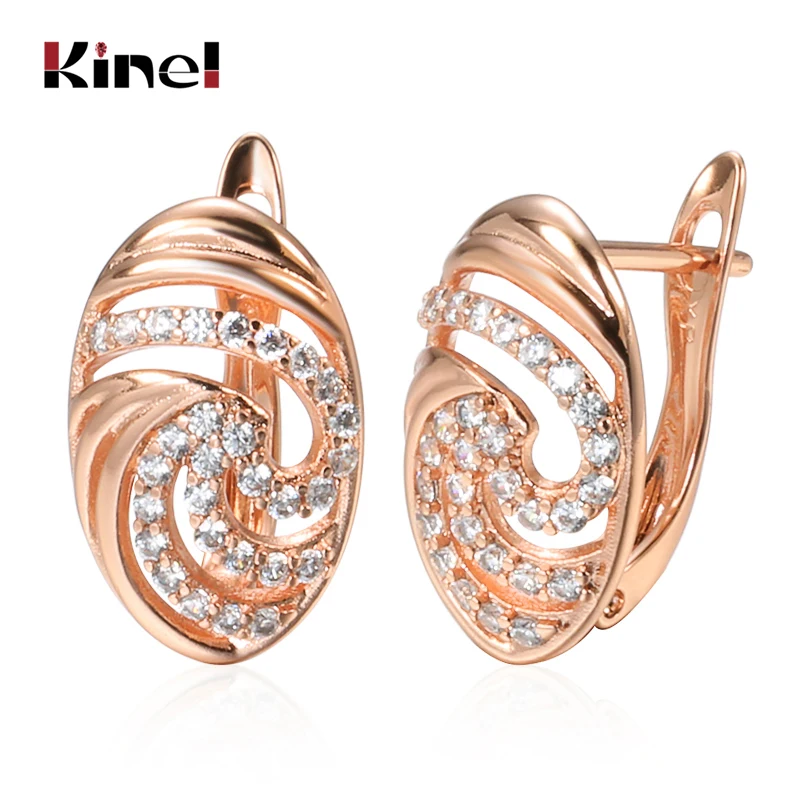 Kinel Luxury 585 Rose Gold Stud Earrings Hollow Flowers Oval Natural Zircon Earrings Beautiful For Women Wedding Fashion Jewelry Brand:Kinel Vintage Jewelry Item Tyle:Women Earrings Main Stone:Cubic Zirconia Other Stone:Natural Zircon Meterial:585 Rose Gold Occasions:Dating / Party / Prom / Gift / Valentines day