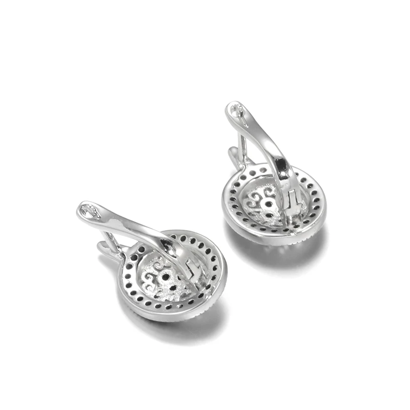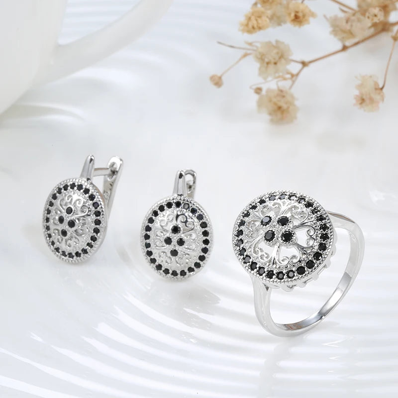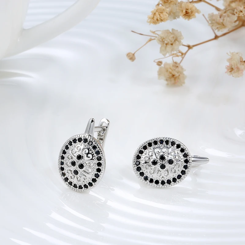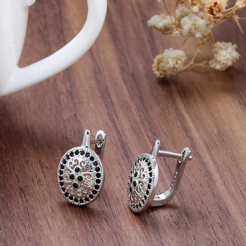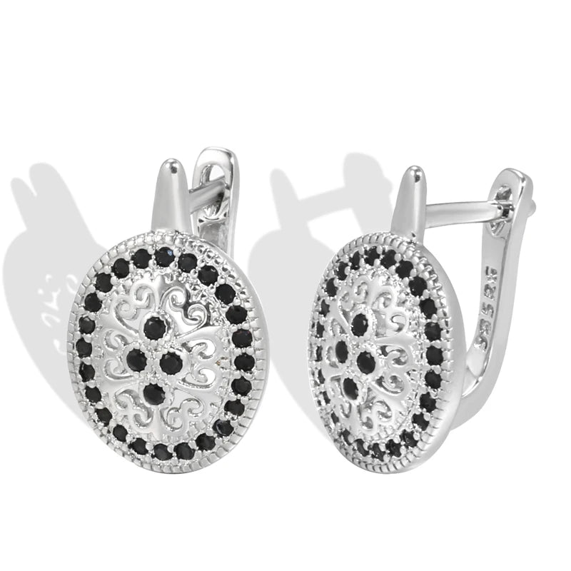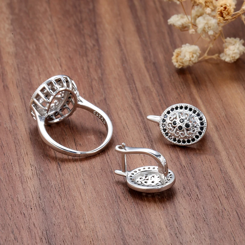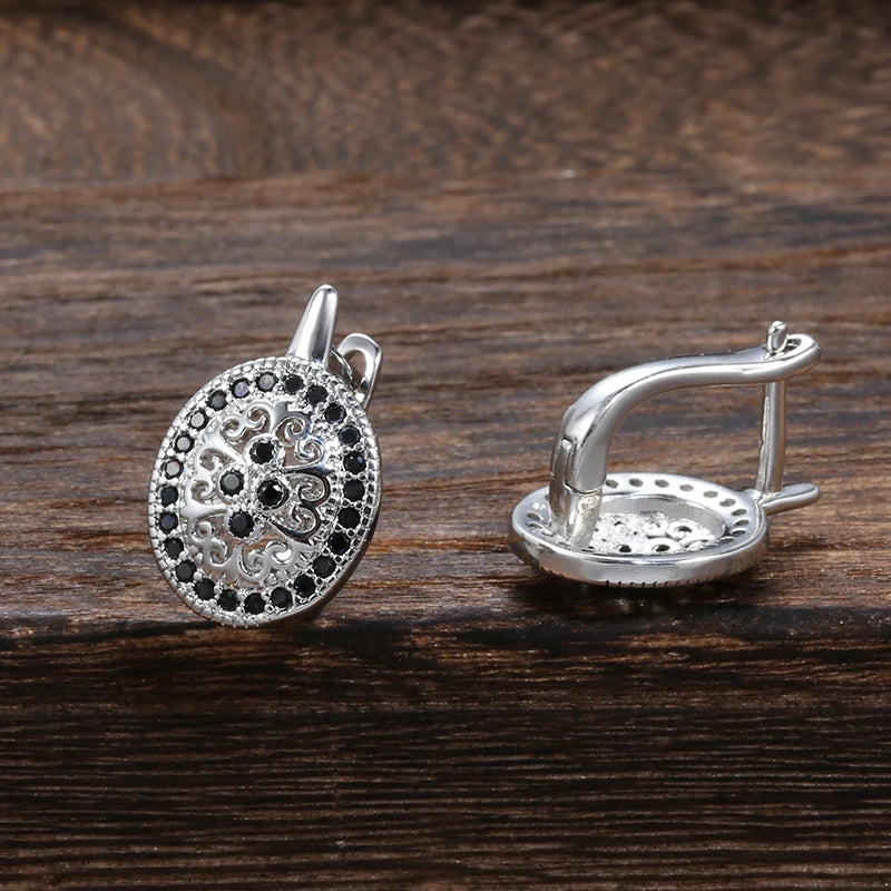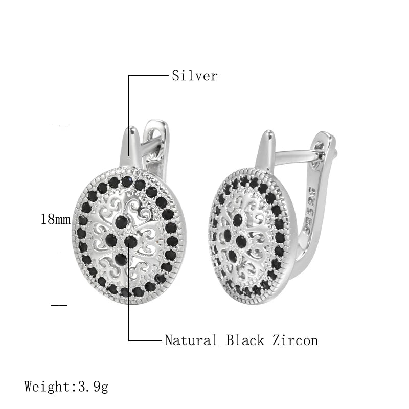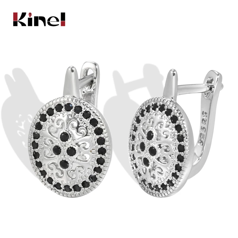 Kinel Luxury Natural Black Zircon Wedding Stud Earrings Hollow Flowers Oval Earrings For Women Tibetan Silver Engagement Jewelry
