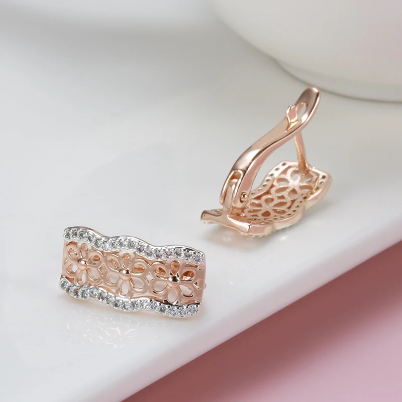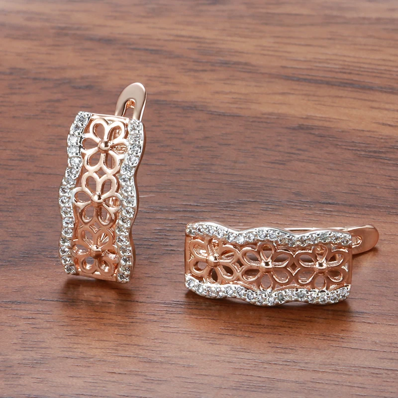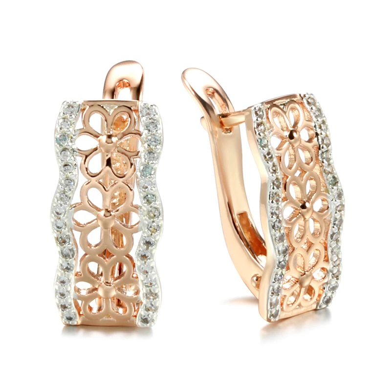 Kinel New Natural Zircon Drop Earrings Women Unique Square Crystal Flower 585 Rose Gold Color Earrings Fashion Vintage Jewelry