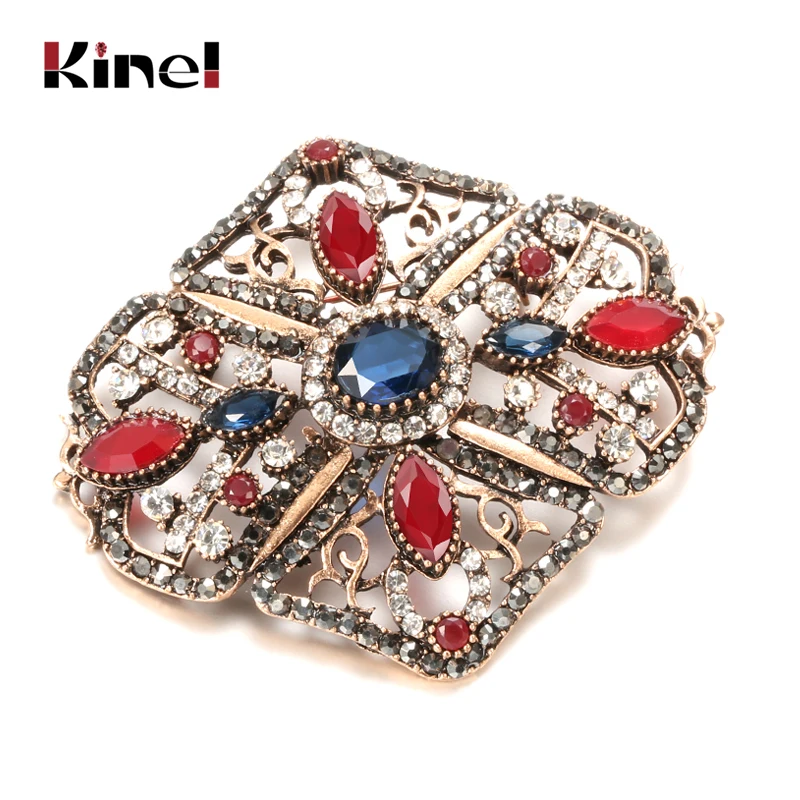 Kinel Vintage Crytal Flower Brooch Pins Turkish Women Retro Gold Color Ethnic Bridal Wedding Jewelry Boho Crystal Gift 2020